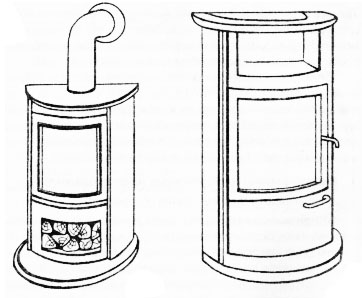 По типу конструкции стальные печи-камины, как и классические камины, можно подразделить на симметричные (размещаемые в центре комнаты по оси симметрии) и угловые. В зависимости от количества отапливаемых комнат и объема дома печи-камины различаются своими размерами и тепловой мощностью аналогично традиционным отопительным печам. Для их изготовления используются прочная сталь, чугун, огнеупорное стекло и керамика. Эти материалы диктуют и дизайн, и технологию изготовления. Если раньше при сооружении каминов, прежде всего, стремились сделать его максимально декоративным, то сегодня больше внимания обращают на его эффективность и экономичность. Поэтому второе существенное отличие такого камина от обычного — более высокий КПД. Во-первых, потому, что его топка закрыта, во-вторых — камин греет воздух, а в-третьих — он может работать в режиме длительного горения — режиме, при котором тепло не вылетает «в трубу». Гепла в этом режиме горения выделяется значительно меньше, и расходуется оно именно на обогрев, что значительно экономит топливо. Встроенный регулятор тяги исключает неполное сгорание дров и образование угарного газа. С помощью камина можно осуществить весьма эффективный обогрев не только того помещения, в котором установлена печь-камин, но и всего жилья. Для этого защитный кожух, выполняющий роль теплообменника, при помощи гибких воздуховодов соединяется с любым из помещений дома, и по ним подает в эти помещения теплый воздух.